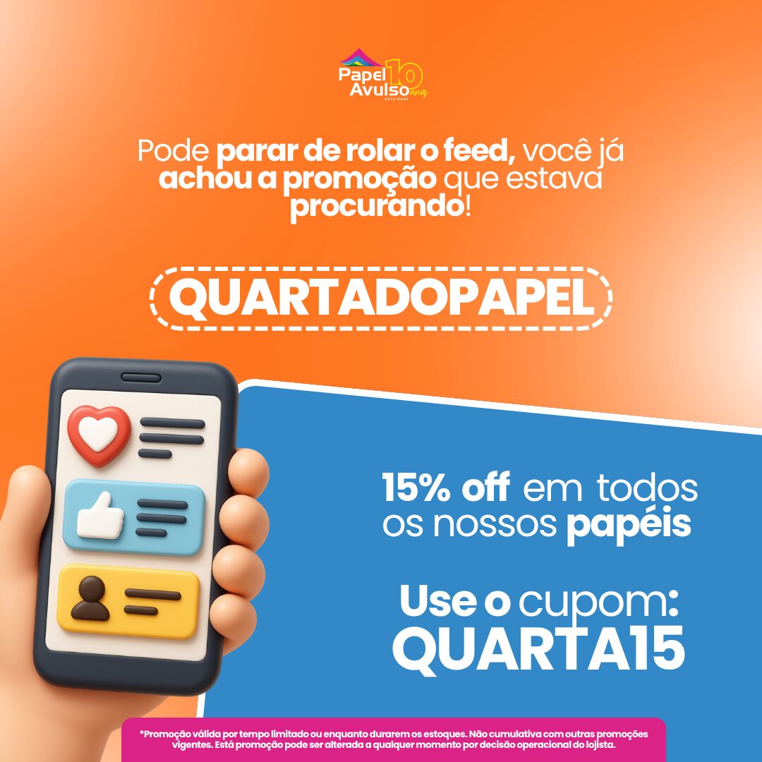 Papel A4/A3/SA3 em pacotes R$24,90 – R$152,90VER PRODUTO Este produto tem várias variantes. As opções podem ser escolhidas na página do produtoAvaliação 0 de 5 -